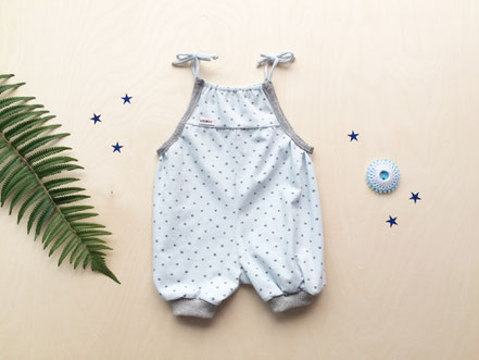 Dieser Einteiler wurde für ein Baby aus Kuba entworfen. Leichte Stoffe, kurze Beine und Träger zum knoten.. perfekt für warme Sommertage.