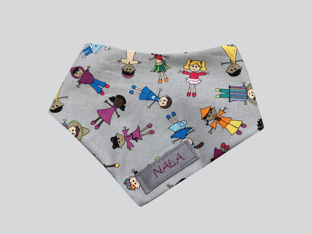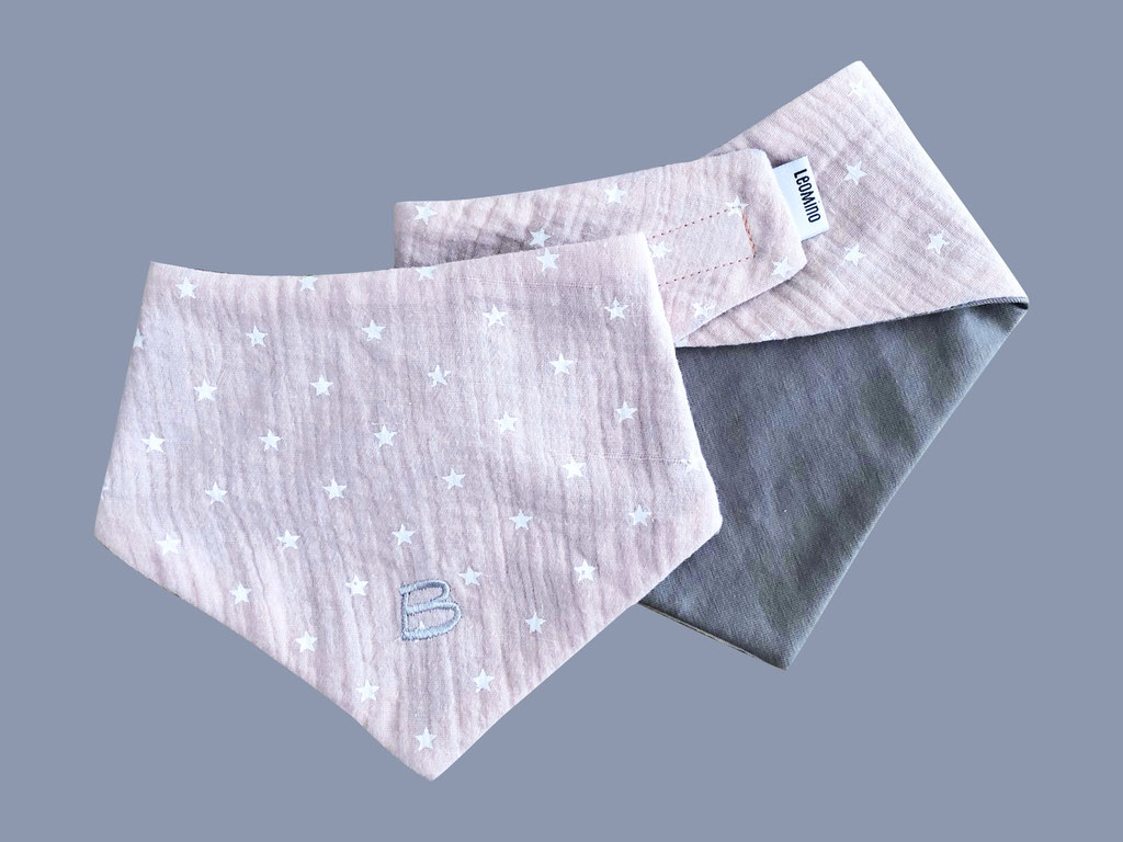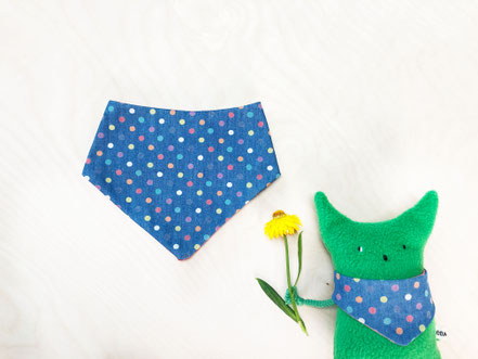 Ein praktisches Wendehalstuch mit Klettverschluss. Die eine Seite wird aus weichem, saugfähigem Frottee-Stoff gefertigt. Der Stoff der anderen Seite ist frei wählbar. Auch schön als kleines Geschenk zur Geburt.
