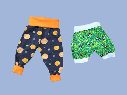 Bequeme Hose mit Gummizug, auch für ältere Kinder (auf Anfrage). Erhältlich in lang und kurz.