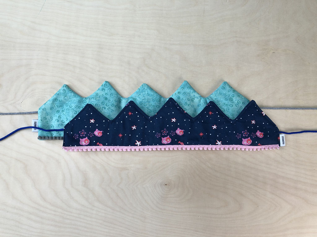 Für Geburtstagskinder sowie kleine Prinzen und Prinzessinnen. Die Krone kann gewendet werden und ist in der Größe flexibel. Durch die Kordeln an den Enden kann sie dem jeweiligen Kopfumfang