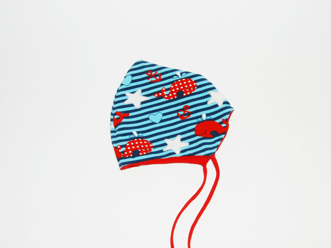 Schöne Mütze mit Bündchen. Für optimalen Sitz bitte Kopf-Umfang des Kindes messen und bei der Bestellung angeben.