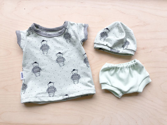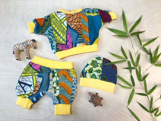Pumphose, Leggins, Pulli, Langarmshirt, T-Shirt, Einteiler, T-Shirt-Kleid, Sommerkleid, Mütze, Tuch, Unterhose, Badeanzug, Bademantel