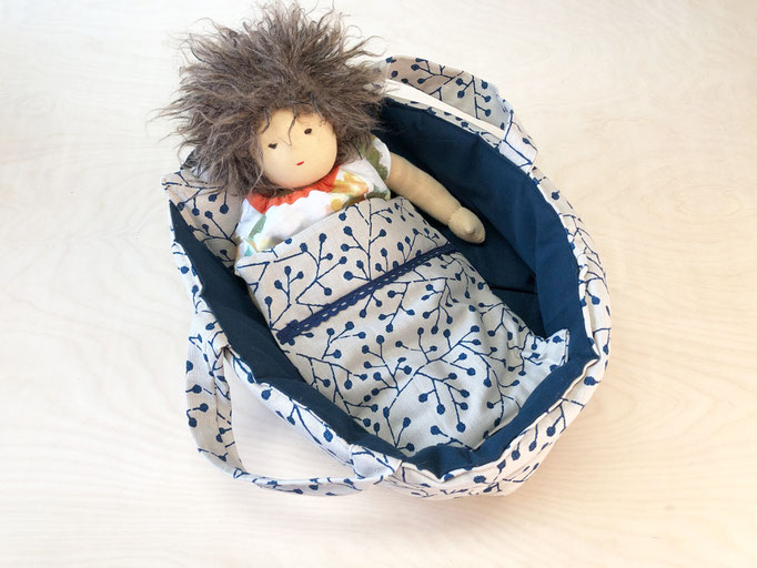 Tragetasche für die Lieblingspuppe. Eignet sich auch super als Körbchen für Stoffhunde und andere kuschelige Freunde.